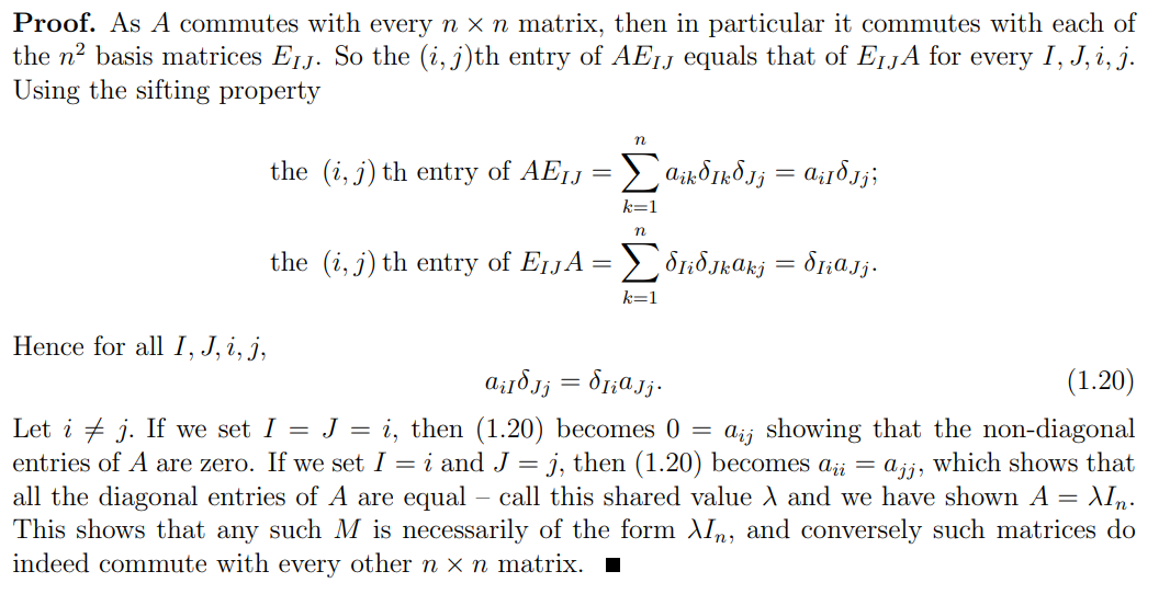 Let be an matrix such that for all matrices M (i.e. commutes with all matrices)